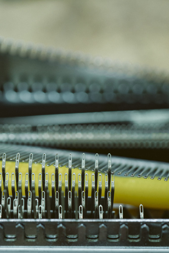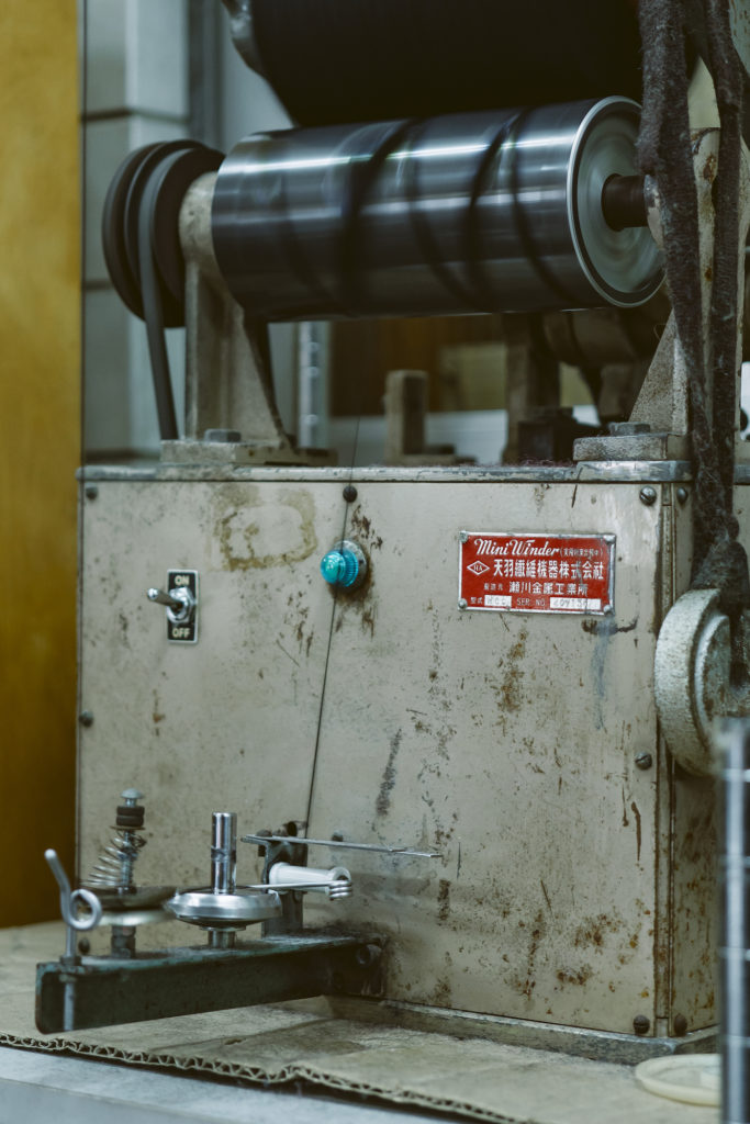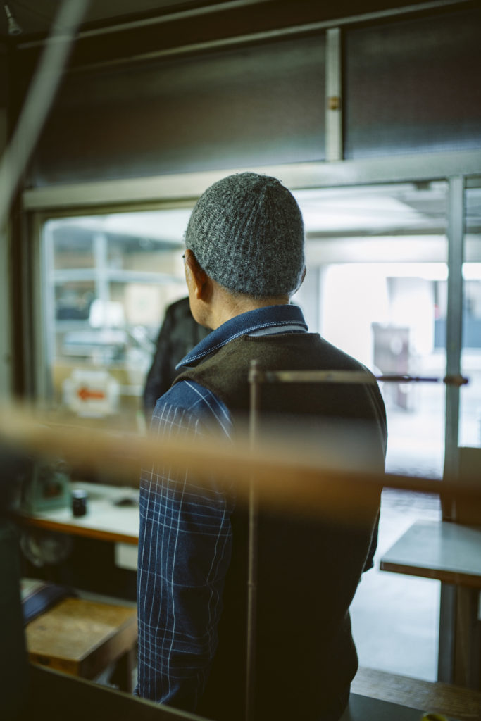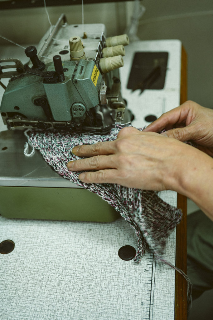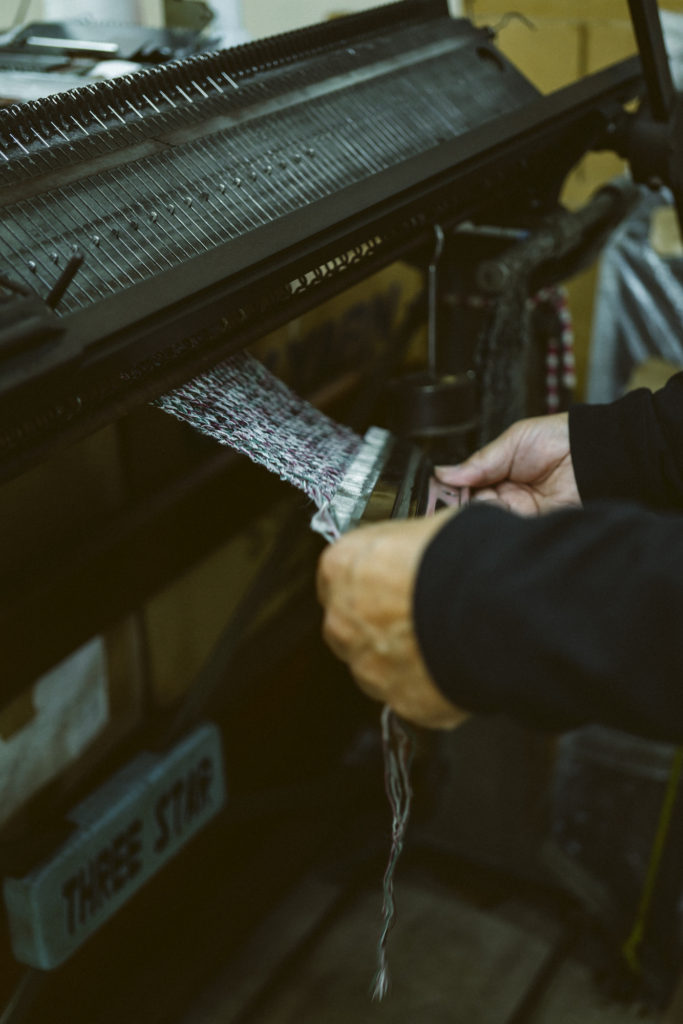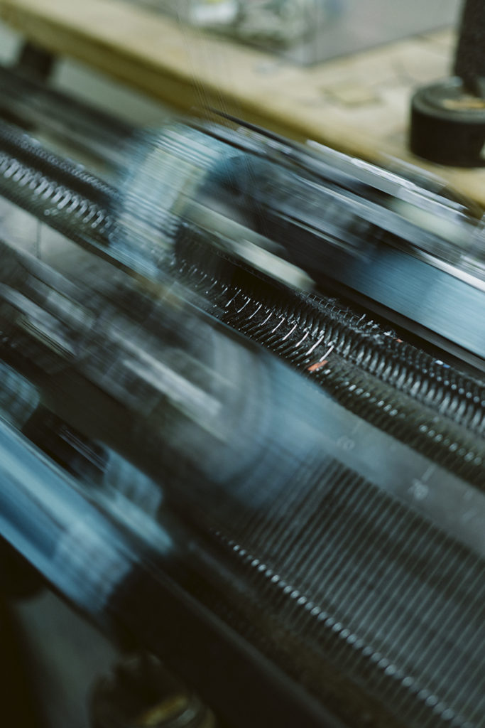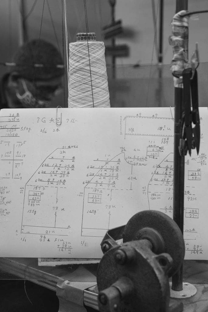 And hence, we visited a historic Japanese knitwear factory. The factory has been established for 70 years and still uses old-fashioned knitting machines, which are rare nowadays. Some of their craftsmen have 50 years of working experience—the true veterans. Not all of our knitwear is made using these old-fashioned machines, but the manual production system, rather than a modern computerized production system, will meet our meticulous demands.