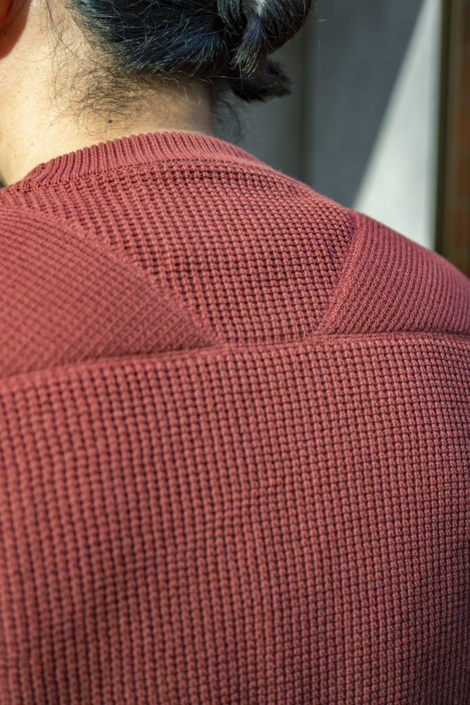 Thermal insulation, everyday use, and slim silhouette—we were able to create the exact knitwear we needed. A cotton waffle knit born from our own needs. We hope you’ll give it a try too.
