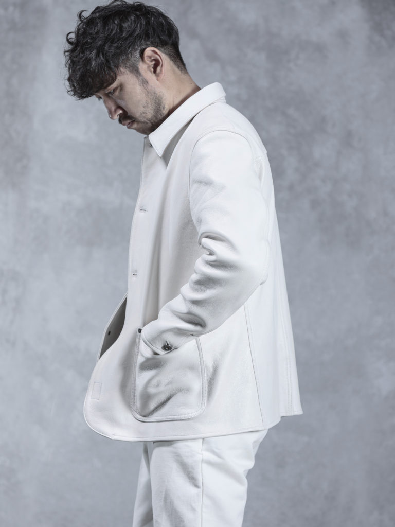 1.1mm-1.2mmの軽量なシープスキンを使用し、茶芯のフルベジタブルタンニンレザーで特に表情のある部分を使用しており、軽やかな着心地と革の味わいのどちらも楽しむことができます。