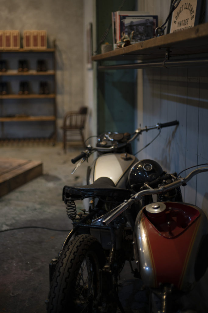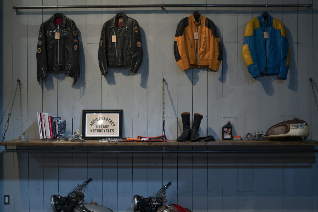 レザージャケットやVINTAGE MOTORCYCLEが好きな人にはたまらない空間のはずです。