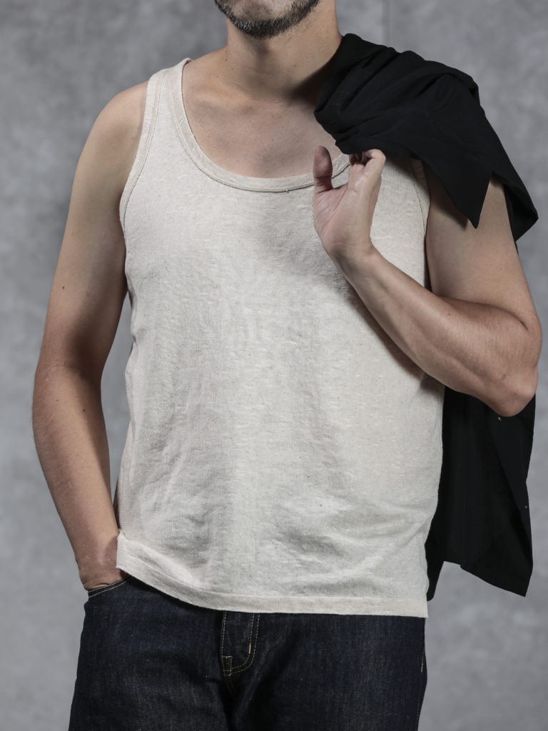 昨年リリースし好評だった綿、リネン、ラミー素材のニットTシャツが全て出揃い、今年は長袖のクルーネックとタンクトップも新たに加わりました。