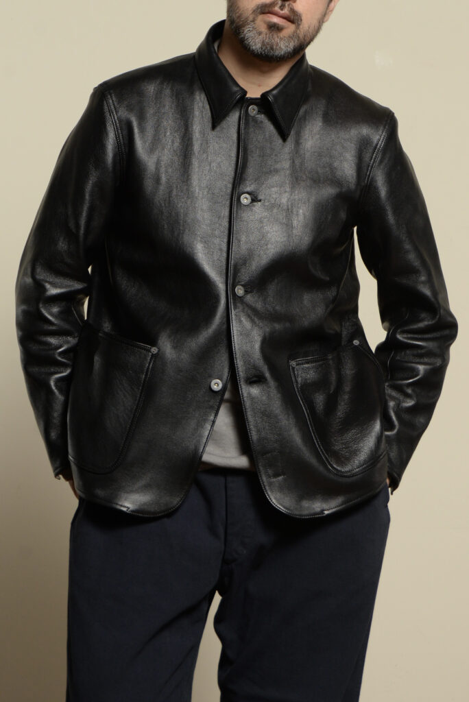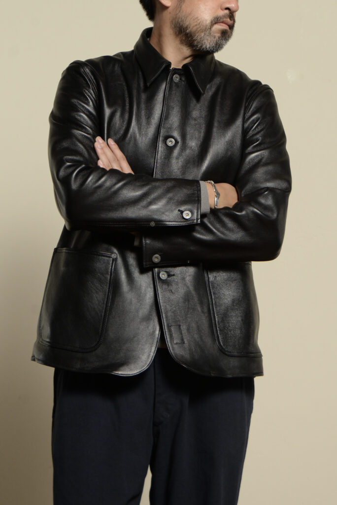 ACVMからはここ数年春夏シーズンの定番となっている、ACV-LJK03 LEATHER COVERALLを同じく芯通しのブラックシープスキンで作成、